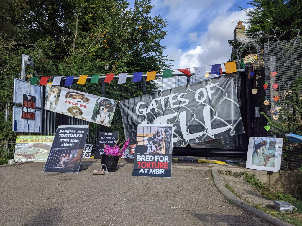 Camp Beagle is a protest camp that was set up in June 2021 by animal rights activists outside of MBR acres- a breeding facilty for beagles used in lab research in Wyton Cambridgeshire. At 17-20 weeks , a courier service called Impex collects them and takes them to UK labs in unmarked vans and they are used for toxology and testing . Their fate is doomed and many suffer during the tests. Camp Beagle protesters hold vigils 24 hours outside the facilities and attempts have been made to shut the facilities down. The core team members hold a true compassionate , generous and selfless dedication to their cause; it is all about the Beagles and their welfare. Suffering the elements , some core volunteers will camp out 24/7 with provisions, internet to be on the ready to protest and defend these four legged defenceless creatures.